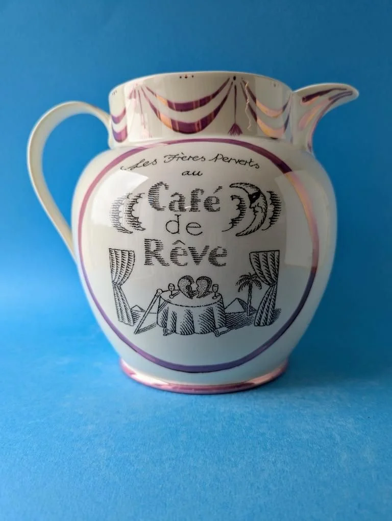From Sussex Lustreware a range of china based on my drawings for the ‘Les Freres Perverts’ cabaret group concert programmes of the 1970s. 80s and 90s.